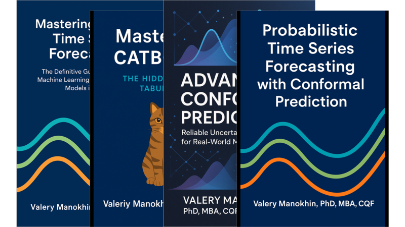 The Forecasting, CatBoost & Conformal Prediction Tetralogy https://leanpub.com/b/forecasting_catboost_conformal_predictiontetralogy by Valery Manokhin is the featured bundle on the Leanpub homepage! https://leanpub.com #ComputerScience #MachineLearning #Mathematics #Python #DataScience #DeepLearning #Education #books #ebooks