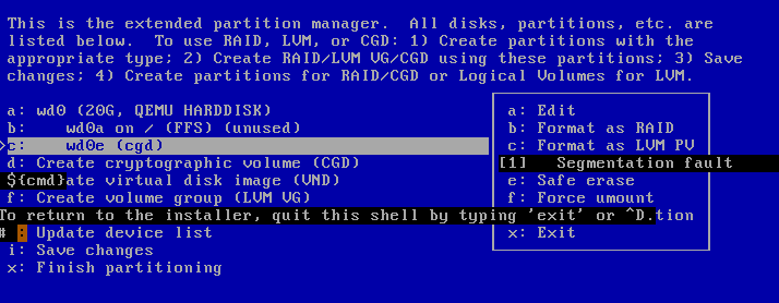 Ane baru ingat kalo storage di VPS sekarang cuma terpakai 1Gb dari 20Gb tersedia. Jadi ane harus bikin partisi / memakai semua size. Tapi disini masalahnya, sudah hampir seharian ini ane coba untuk memperbesar partisi / tapi masih saja gagal. Di NetBSD saat ini tidak banyak tools yang bisa ane pakai untuk pekerjaan ini, apalagi manual dokumentasi NetBSD yang kayak 💩 dan kelakuan developernya yang bikin opsi atau flag berbeda dengan umumnya (FreeBSD/OpenBSD, Linux, dll) sehingga ane kesulitan nyari perintah yang pas.