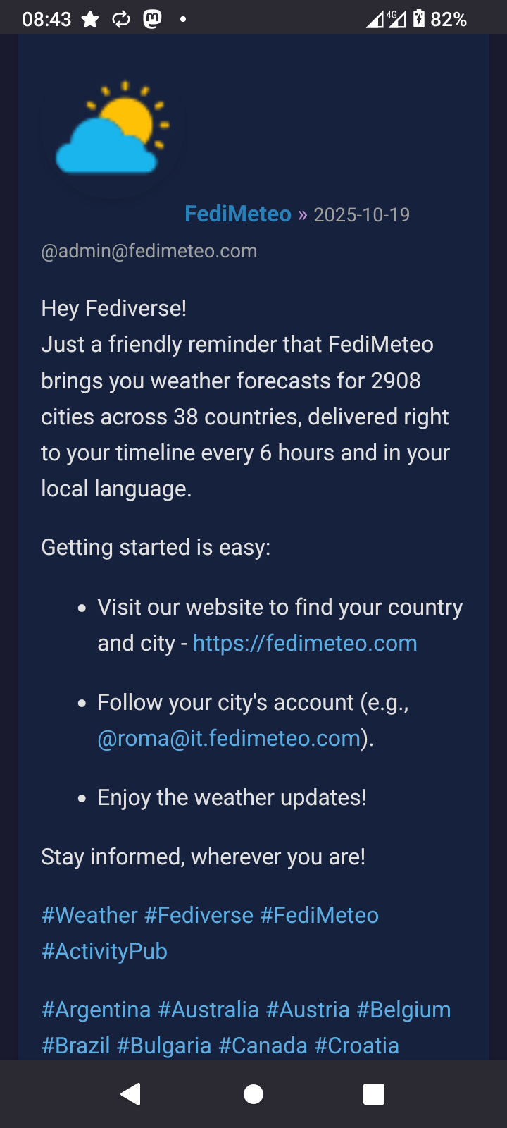 We should all be thankful for this work that is done so that people from thousands and thousands of cities can see their weather right in the FediVerse.