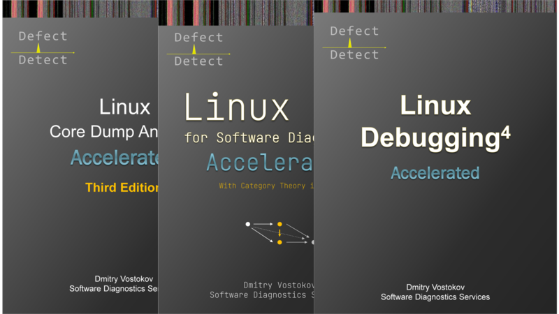 Accelerated Linux Core Dump Analysis, Fourth Edition, Accelerated Linux API for Software Diagnostics, and Accelerated Linux Debugging 4D