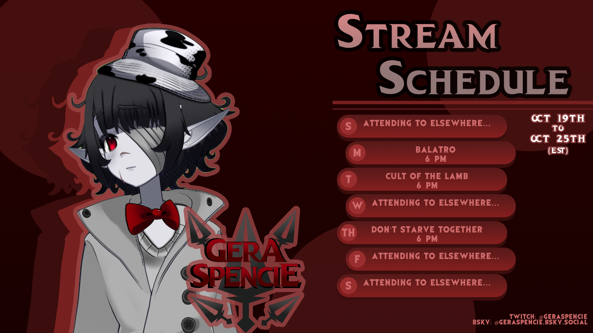 Here's the schedule! I'm going to be finishing my #slaythespire run, today at 6 PM, then I'll play another, and then maybe another...