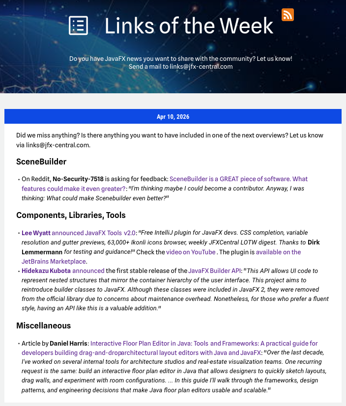 Here is the new #JavaFX #LinksOfTheWeek, published on https://www.jfx-central.com/links.