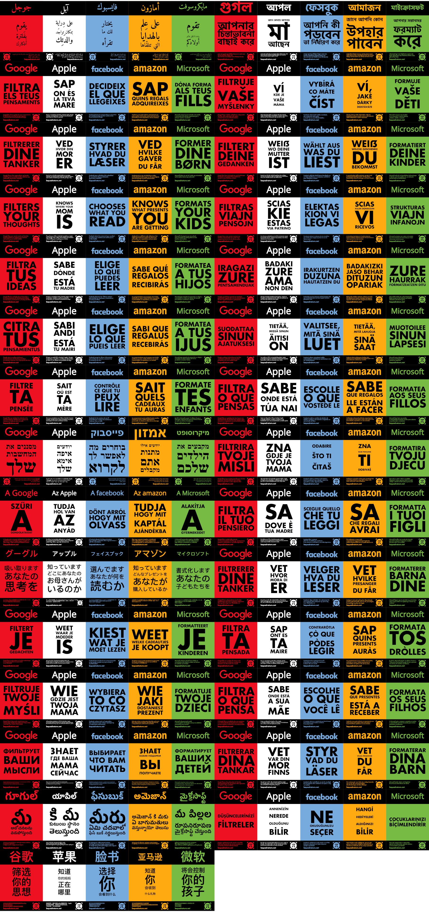 This page hosts the translations and corresponding resources of the GAFAM poster campaign texts from the group action against GAFAM by @LaQuadrature.
