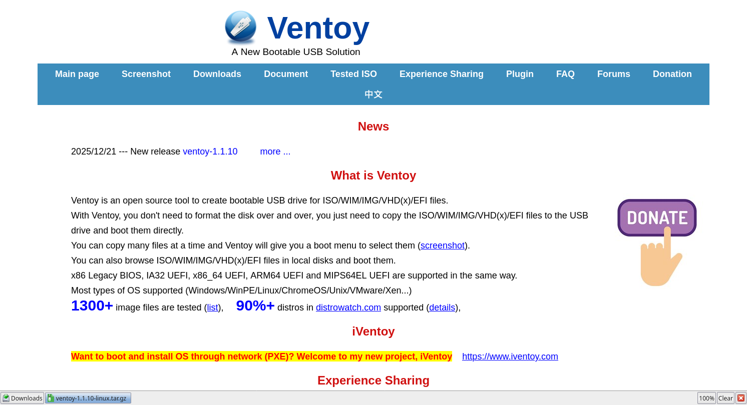 >> Ventoy is an open source tool to create bootable USB drive for ISO/WIM/IMG/VHD(x)/EFI files
