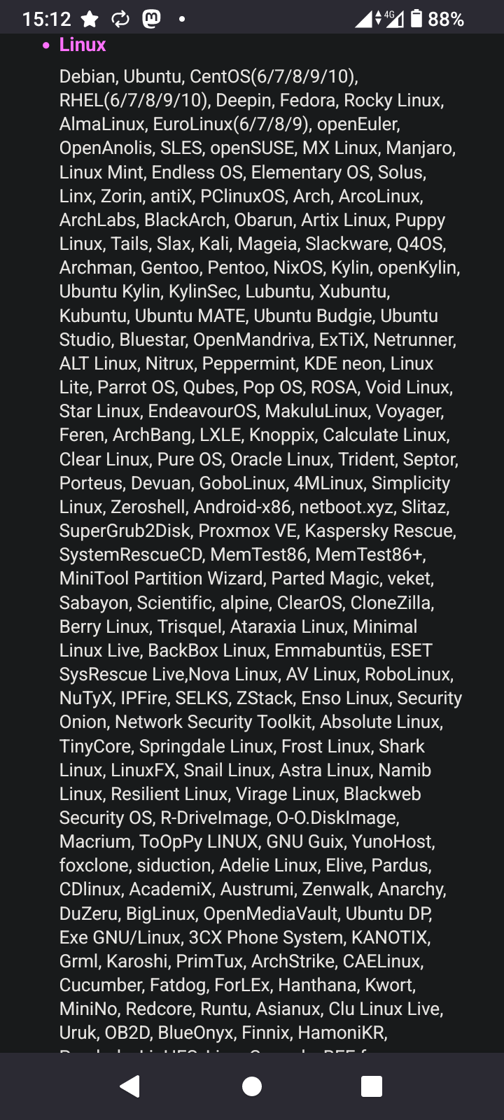 #Debian #GNULinux #GNU #Linux #Privacy #SysAdmin #Tech #OpenSource #LMDE #LinuxMint #Mint #MXLinux #Deepin #PeppermintOS #antiX #SparkyLinux #BunsenLabs #Elive #AVLinux #NeptuneOS #KaliLinux #Kali #Tails #Whonix #Proxmox #OpenMediaVault #GRML #FINNIX #Knoppix #RaspberryPi #Pi #VyOS #Devuan #PureOS #Nitrux #EndlessOS #Emmabuntüs #Siduction #Bashcore #VanillaOS #TrueNAS #TrueNASScale #WindowMakerLive #Neptune #blendOS #crunchbang #Mobian #Droidian #FuriOS #LuneOS #Slax