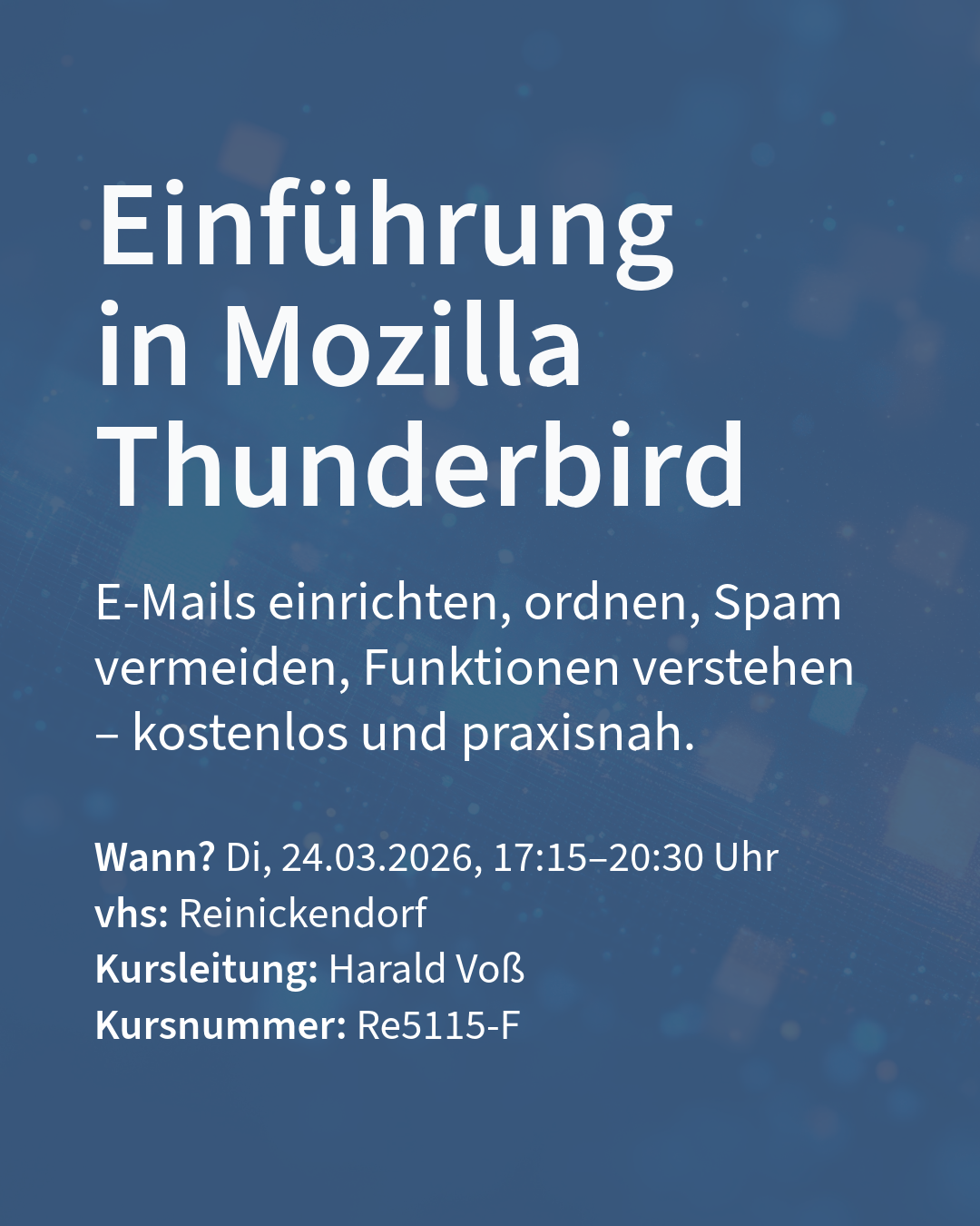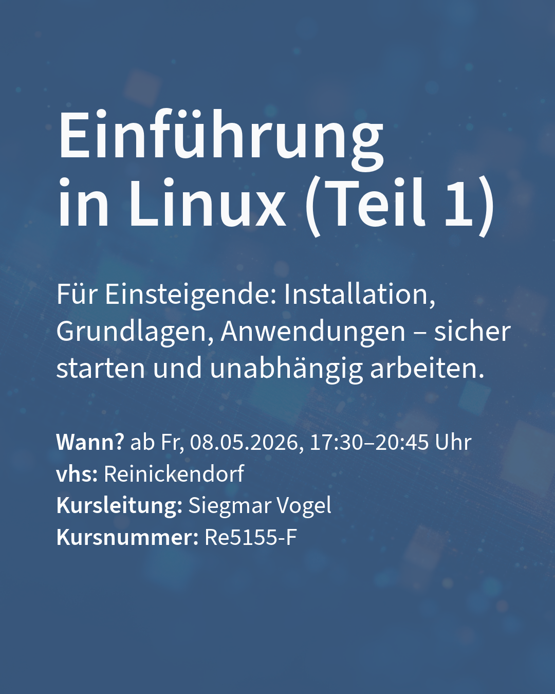 🤗Mit den Kursen für OpenSource-Software der Berliner Volkshochschulen lernst Du, wie der Umstieg klappt – praxisnah und verständlich. Heute ein Tool wechseln, nächsten Monat das nächste – Schritt für Schritt. Digitale Unabhängigkeit ist machbar.