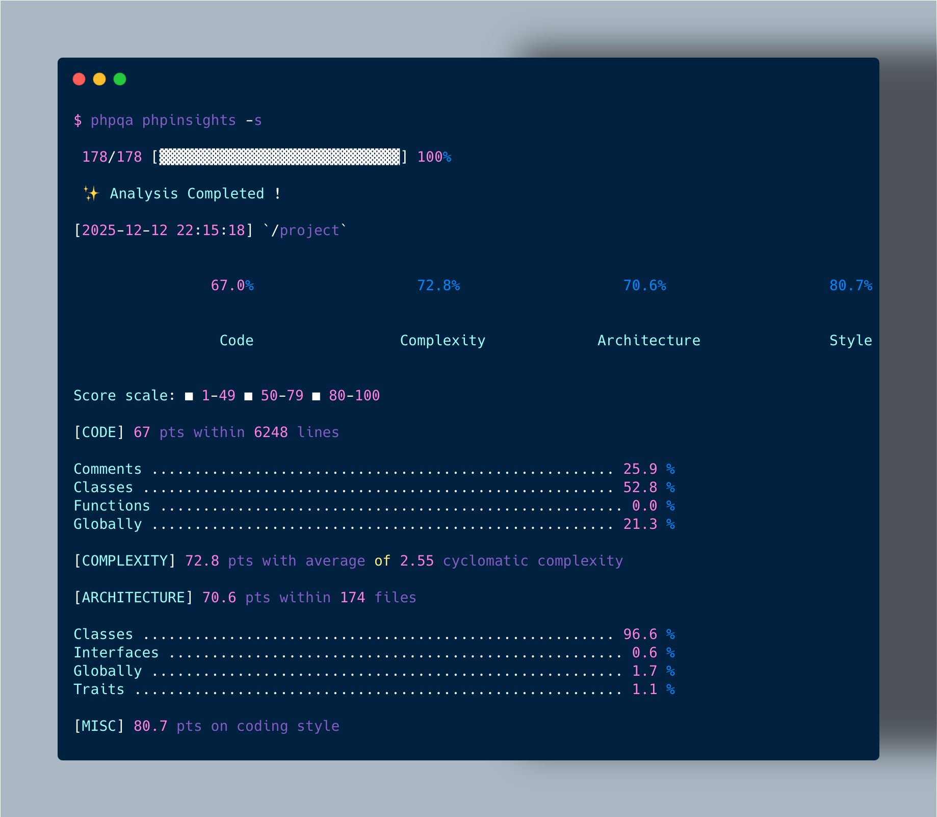 Quickly determine some basic quality info on your PHP code with phpinsights