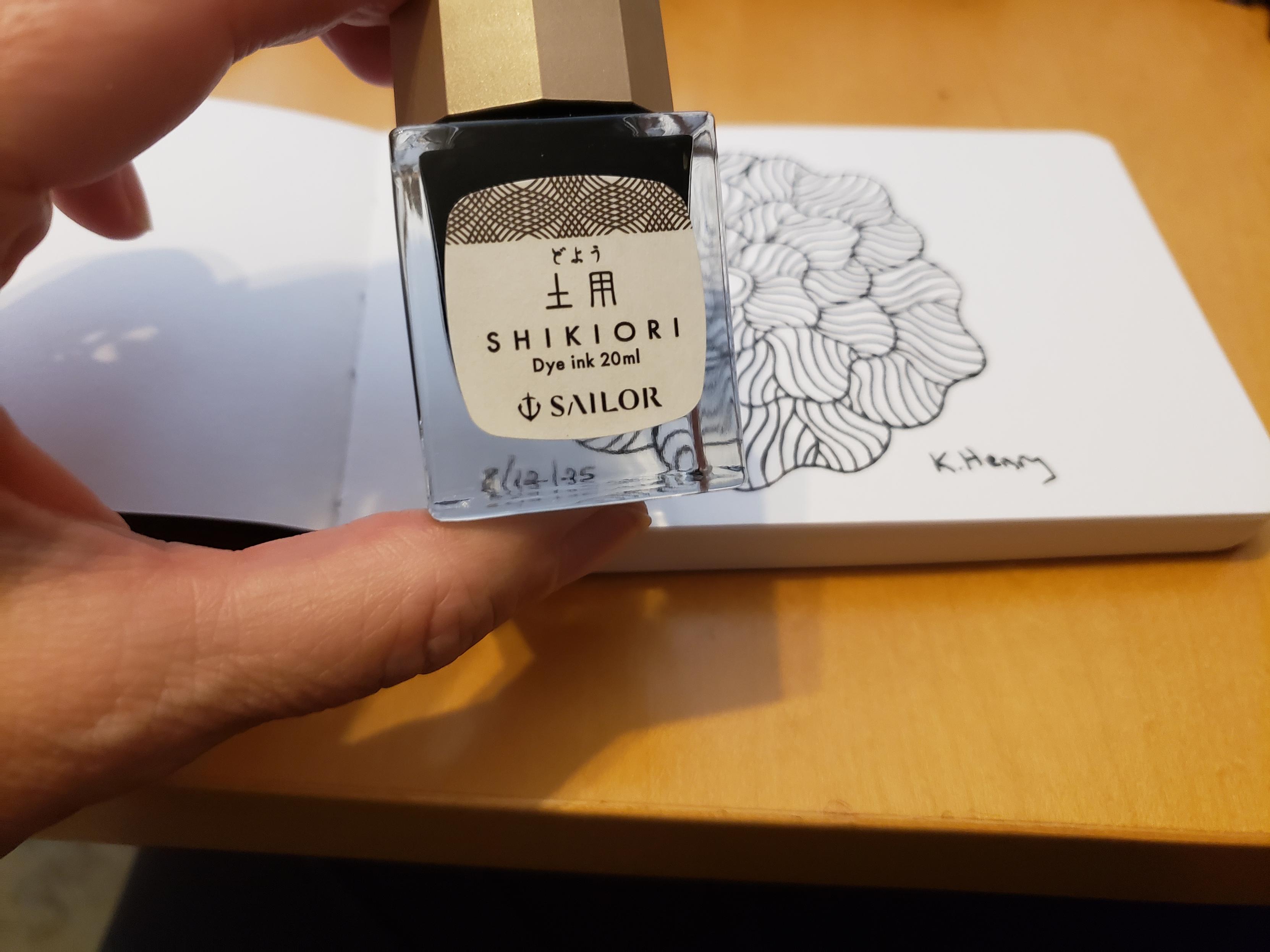 Going with this comforting floral pattern for today's #inkyDays drawing. I'm loving this ink! It looks like a dark brown when wet, but dries to a richly dark plum purple when it dries. And it plays so well with diluted inks and paper.
