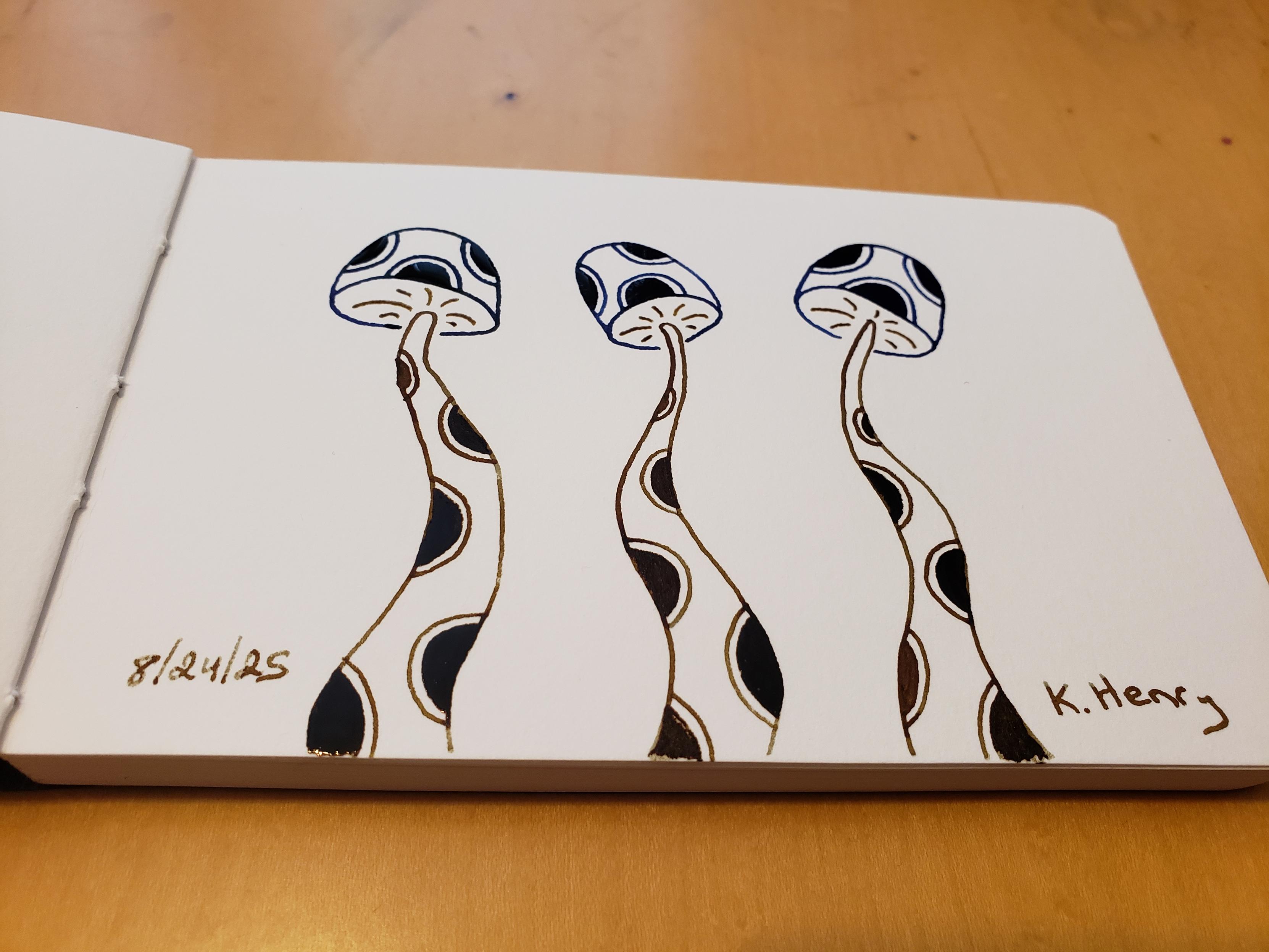 A trio of curvy little fungi for today's #inkyDays drawing.