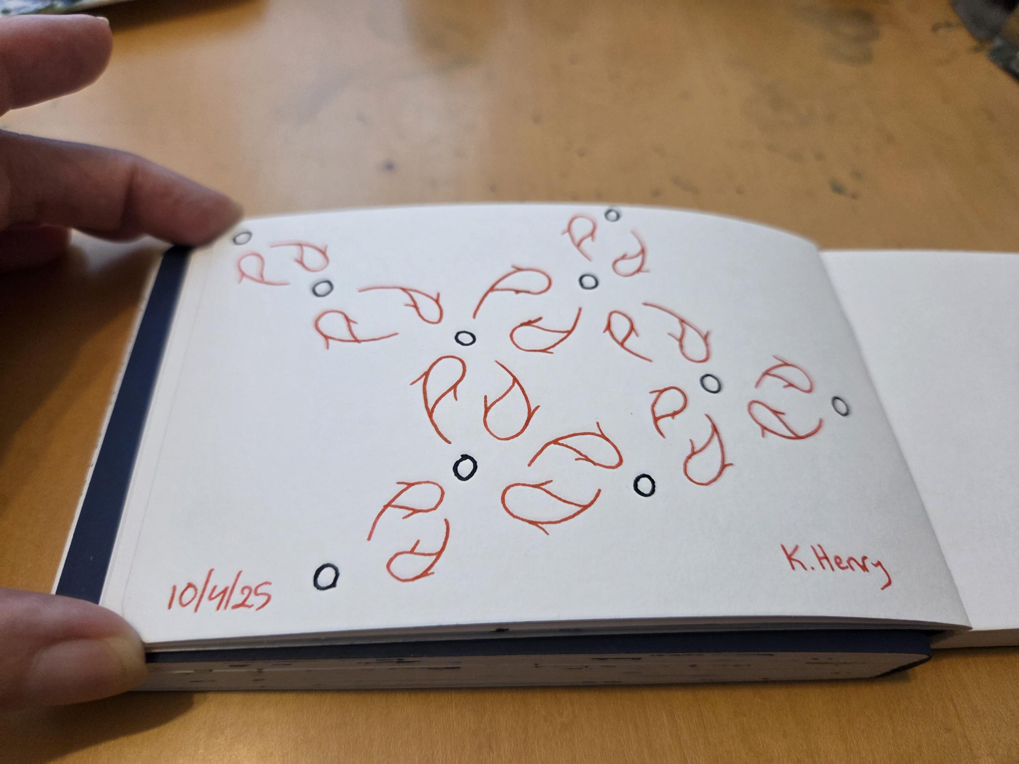 Today's Mathtober prompt is "Strongly". I'm interpreting this as a Strongly Connected Graph, in which there is a direct path between any two nodes. And I drew the edges as fish, as on does if they are a geeky artist like myself.
