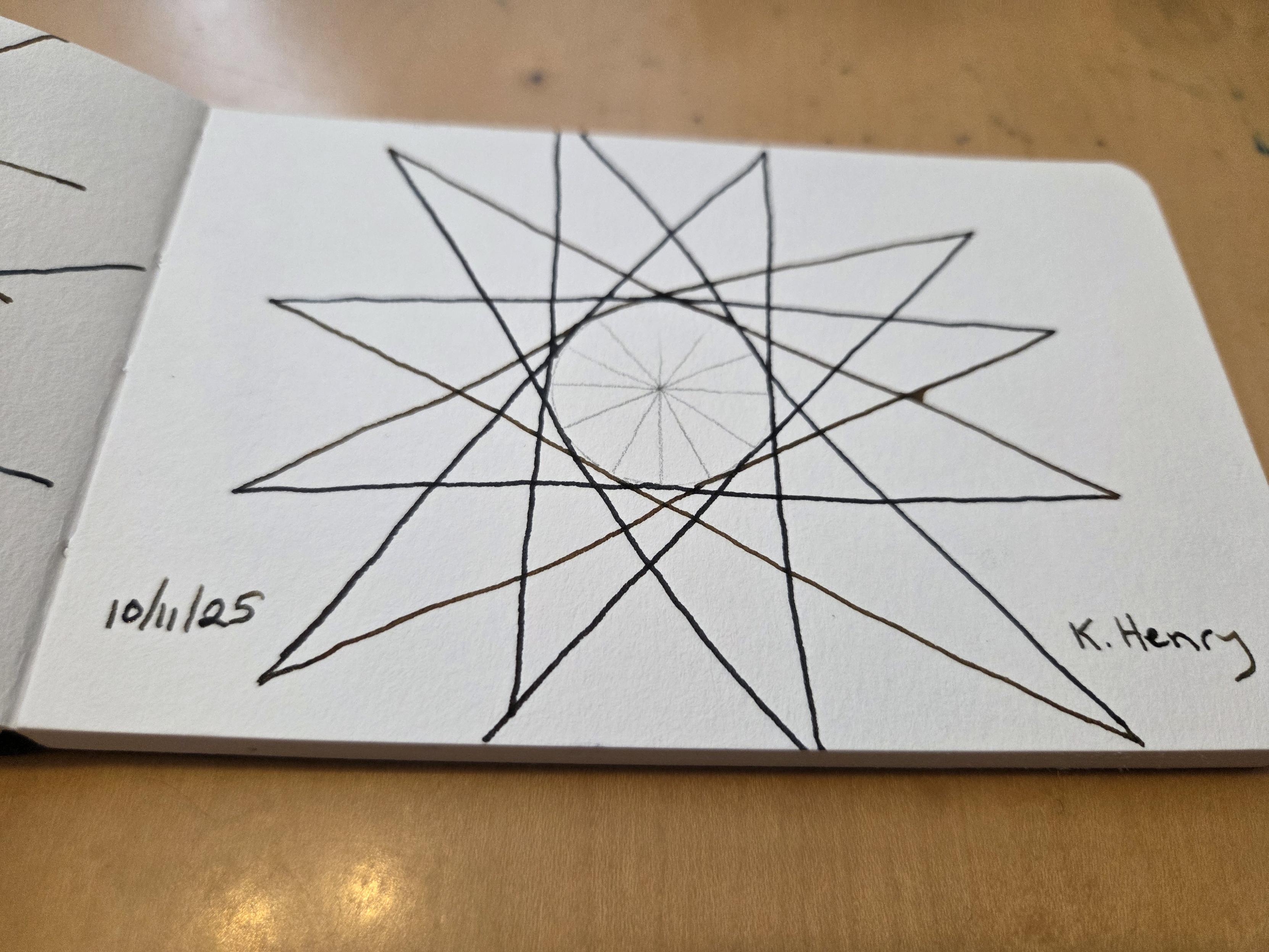 I'm not quite ready to move on from the Stellation prompt, and I'm trying it again with a smaller center. That way, more the the pattern fits on the page.